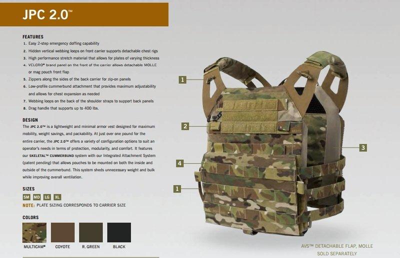 全新 Crye Precision CP JPC 2.0 輕量化戰術背心 Multicam色 多地型
