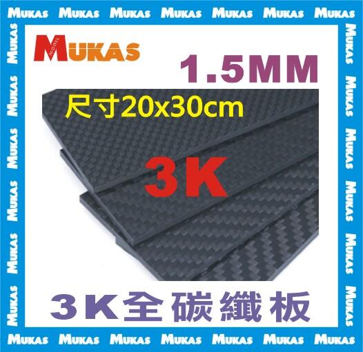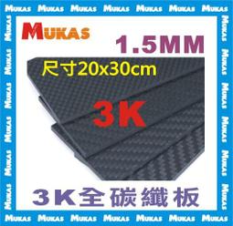 《 MUKAS 》3K碳纖板全碳纖板全碳纖維板1.5mm(20cmx30cm)