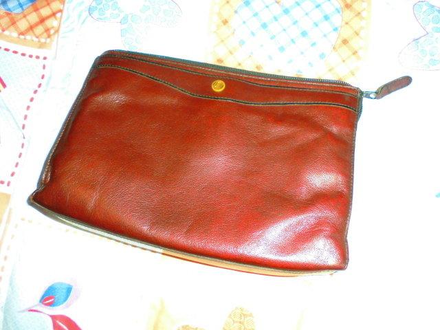 德國 金箭 Gold Pfeil 酒紅色 真皮 小牛皮 手拿包 絕版真品