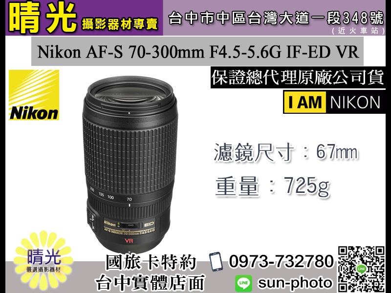 ☆晴光★ Nikon 70-300mm F4.5-5.6 G AF-S ED VR 望遠變焦鏡 國祥公司貨 台中實體