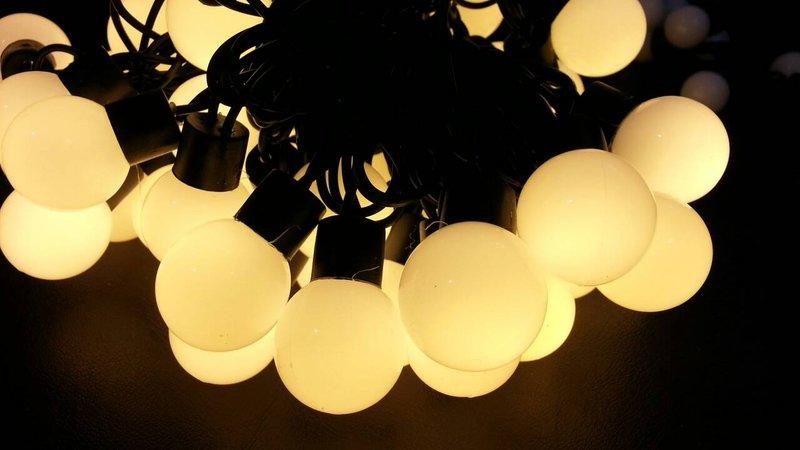 【嘉義】珍珠中圓球[灌膠防水][可串接]"110v恆亮模式"暖白白球/黃光黃球5米50燈/招財/磨砂/燈串/彩球/圓球燈