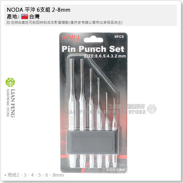 【工具屋】*含稅* NODA 平沖 6支組 2-8mm 鏡面 平頭鋼沖 拆卸 拆解 沖仔 梢沖 平沖組 平頭沖 台灣製