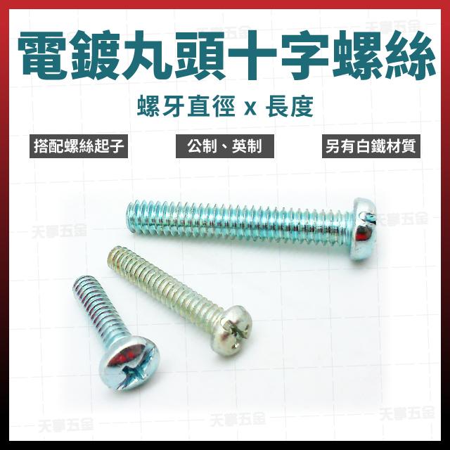 電鍍 丸頭 十字螺絲 M4 x 12mm 100入 [天掌五金]