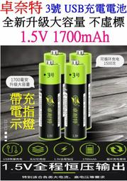 【誠泰電腦】買4送收納盒 卓耐特 3號充電電池 1.5V USB充電電池 聚合物離電池 充電電池 1700 1250毫安