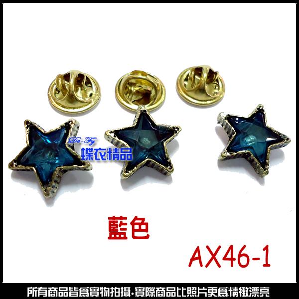 De-Fy蝶衣精品型男韓國直送.4色水晶鑽五芒星古金色徽章胸針別針胸章 西裝軍裝外套背心潮流配件AX46-1藍現貨