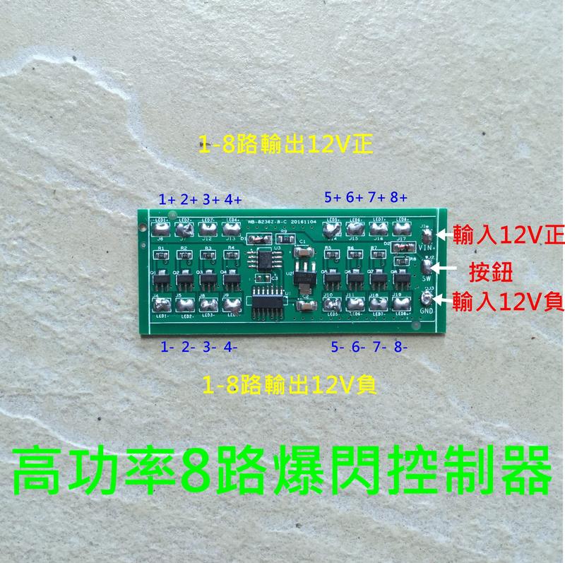 【晶晶旺企業社】高功率高瓦數LED爆閃控制器-2路-6路-8路多種模式-DIY改裝警示燈-按鍵變化模式-檳榔攤12V