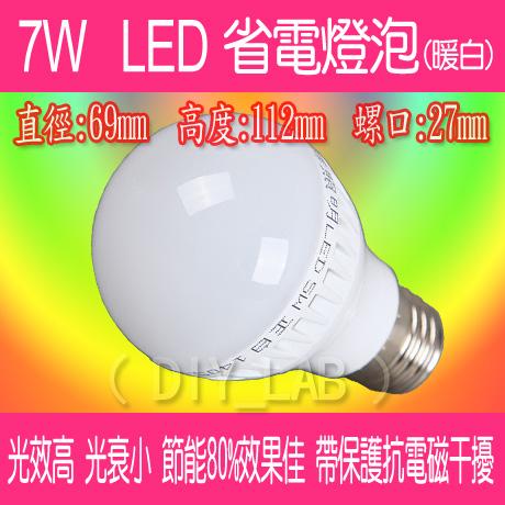 【DIY_LAB 1134A】7W LED暖白光省電燈泡 E27家用節能燈泡 螺口27mm 家用照明燈泡(現貨)