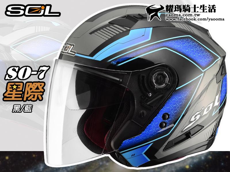 『預購』SOL安全帽|SO-7 SO7 星際 黑/藍【LED警示燈.可加防護下巴】『耀瑪台中安全帽機車部品』