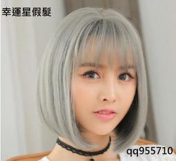 【幸運星】Cosplay 道具 外拍 假髮 角色扮演 直播 外拍 表演道具 空氣瀏海 短髮 灰白色 假髮 氣質 附髮網