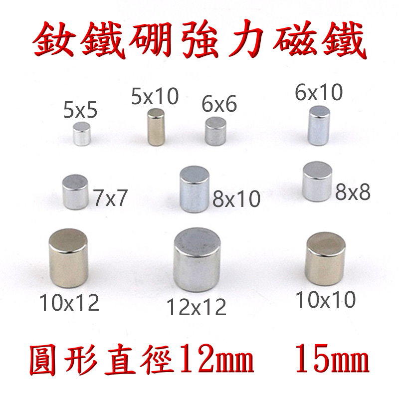釹鐵硼強力磁鐵 圓形 直徑 12mm 15mm 鍍鎳 防銹 強磁 磁鐵 冰箱門 油箱 紗窗 布簾 黏土 白板 教學
