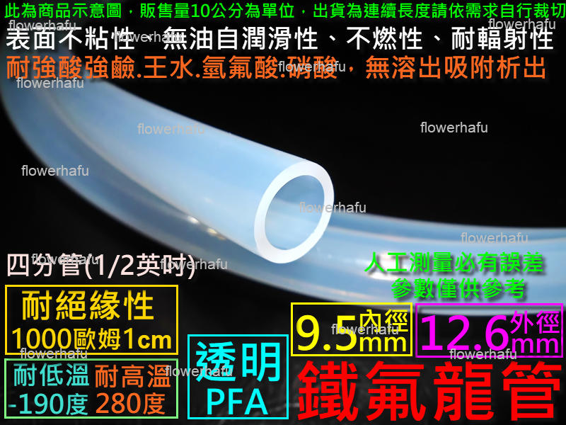 鐵氟龍管 內徑9.5mm外徑12.6mm長10cm透明 9.5x12.6 PFA 1/2英吋 4分管