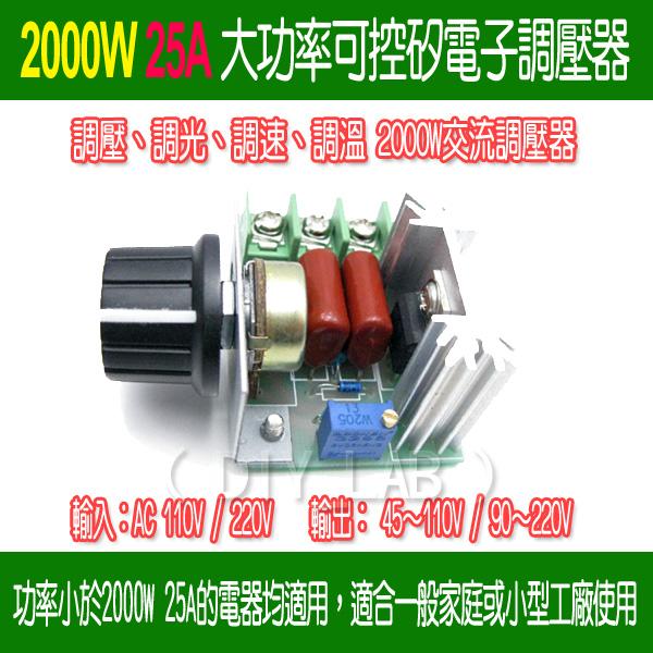 【DIY_LAB 1399】2000W 進口可控矽 大功率 電子調壓器 調光 調速 調溫 調壓 交流調壓器(現貨)