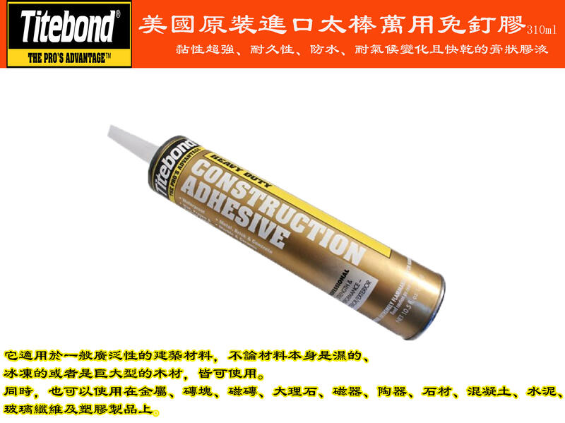 【台南丸豐工具】【美國進口Titebond 太棒 太棒萬用膠 免釘膠 美國原裝 單瓶】