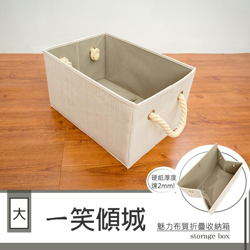 *鐵架小舖*ㄧ笑傾城魅力布質折疊收納箱_大 /收納袋/折疊箱/布藝收納籃/小物收納/棉麻收納籃/手提收納盒/6期0利率