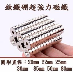 釹鐵硼強力磁鐵 圓形 有孔 磁環 直徑 20mm 22mm 25mm 30mm 35mm 50mm 80mm 強磁 教學
