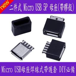 【DIY_LAB#1745】Micro USB插頭  USB接  USB母座焊線式 帶膠殼 二件式 邁克5P母座帶膠殼
