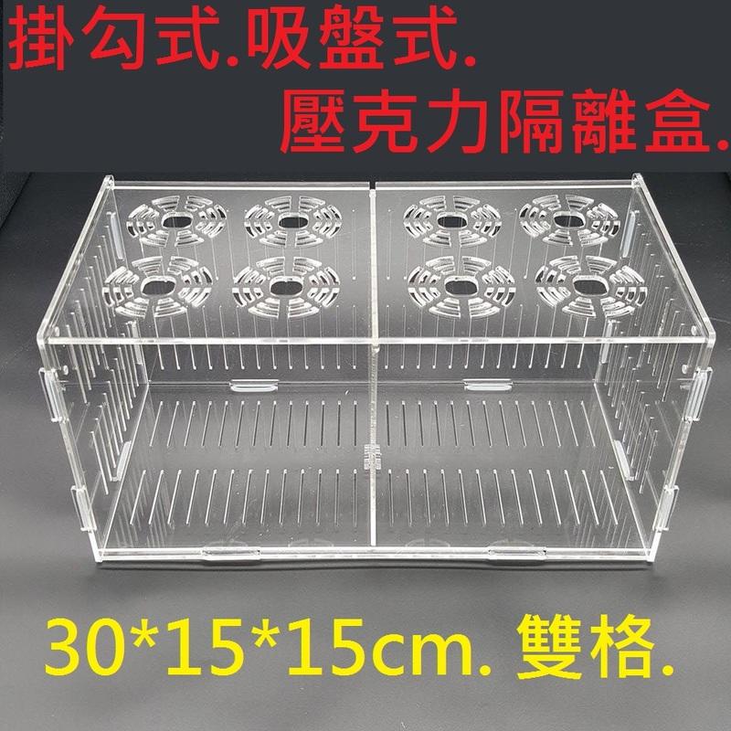 【圓孔、30*15*15cm、雙格有蓋】壓克力繁殖盒、壓克力隔離盒、壓克力拍照盒【掛勾式、吸盤式、適合各種魚缸使用】