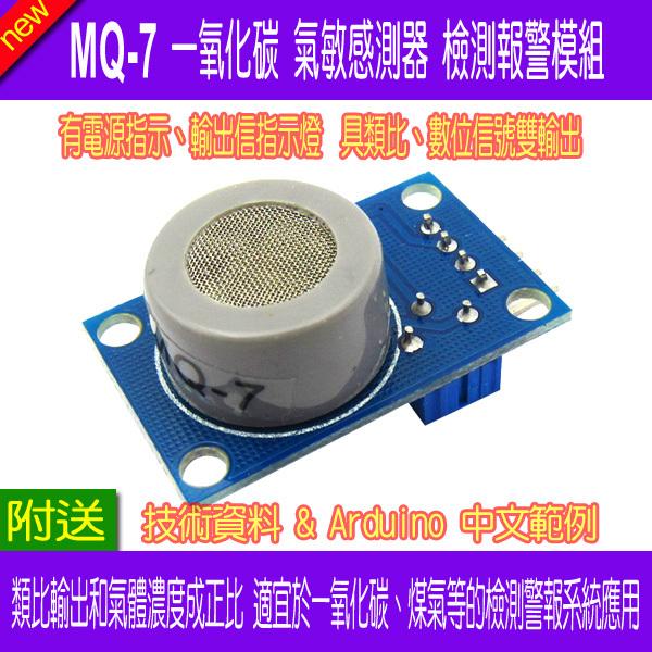 【DIY_LAB#1828】MQ-7 一氧化碳 氣敏感測器檢測報警模組 氣體傳感 送51/Arduino中文範例(現貨)