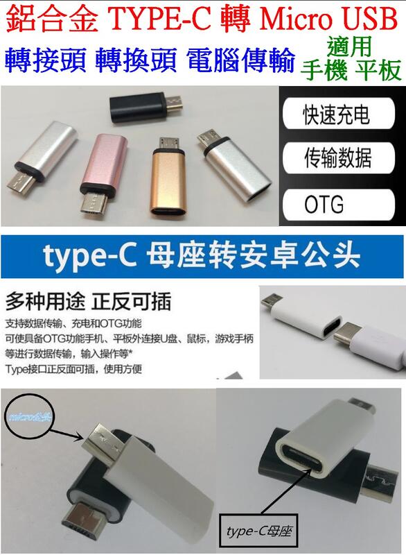 【誠泰電腦】OTG 轉接頭 Type-C 轉 micro USB 轉接頭 可傳輸 真母座 金屬頭 USB轉接頭