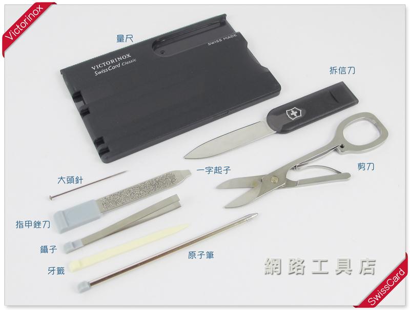 網路工具店『VICTORINOX維氏 瑞士刀 11用名片型瑞士卡-透明黑』(型號 0.7133.T3)