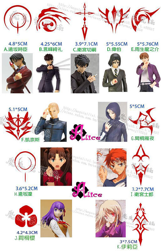 魔鬼愛麗絲/COSPLAY/紋身貼紙/fate/zero/fgo/stay night/令咒/遠坂凜/遠坂時臣/間桐櫻