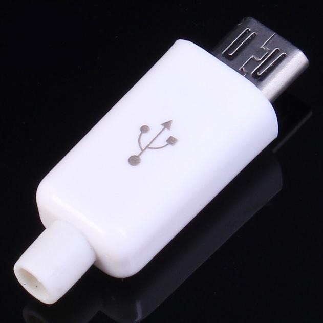 【盼盼525】 Micro USB 蘋果款 白色 公頭 5P 四件式 有線檔保護套 DIY 焊線式 充電器電源改裝必備件