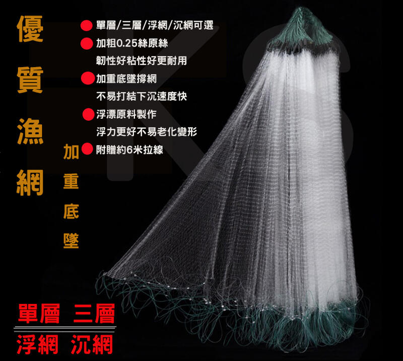 *金禾* 優質原子網 沾網 浮網 沉網 粘網 捕魚網 漁網 絲網 攔魚網 攔網 彾仔 牽網 單層海網 三層 攔河網 掛網