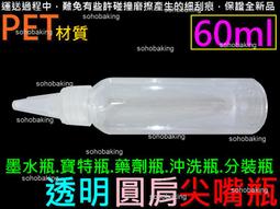 尖嘴瓶 PET材質 60ml 透明 圓肩 墨水瓶 寶特瓶 藥劑瓶 沖洗瓶 香精瓶 分裝瓶 滴瓶 油瓶 針嘴瓶 60g