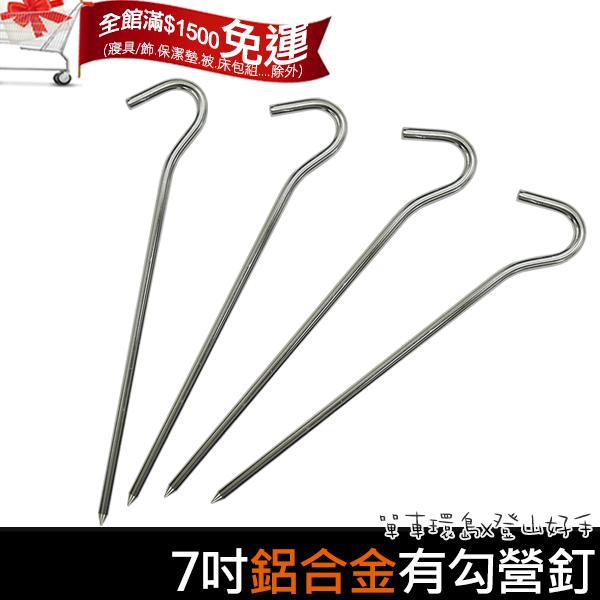1支10元【登山好手】7吋輕量鋁合金有勾營釘 炊事帳釘 外帳釘 營地釘 地墊釘 園遊會戶外活動篷釘子 防風釘 大量訂購