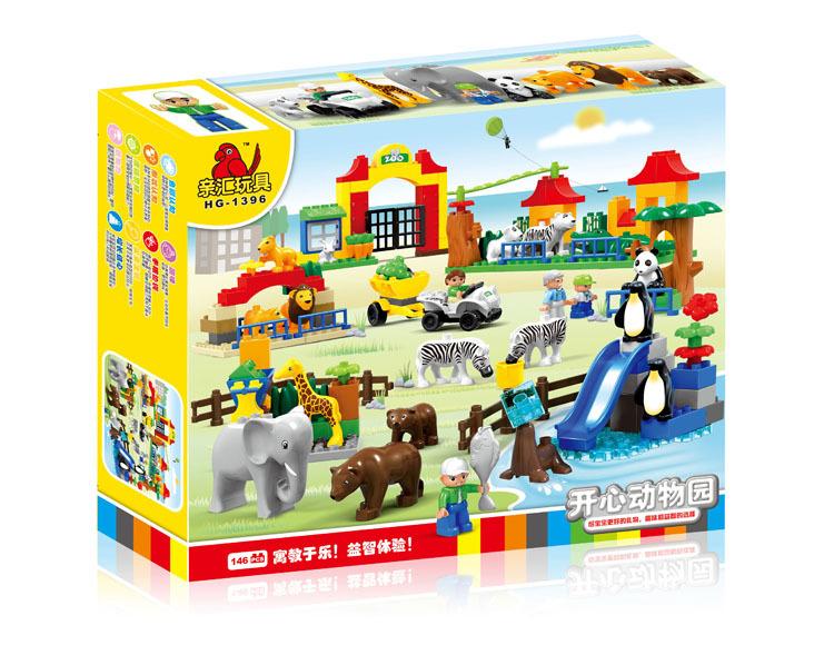 <積木總動員> 鴻源盛積木 HG-1396 豪華動物園主題積木組 大顆粒,大象老虎長頸鹿