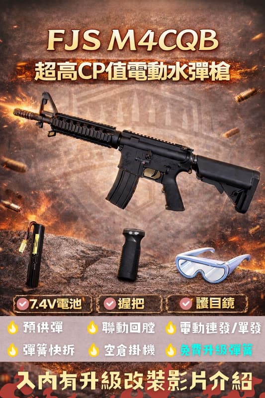 【炙哥】FJS M4CQB 電動水彈槍 超高CP值 改1.3初速近100M/S 金齒 快拆 生存遊戲 玩具