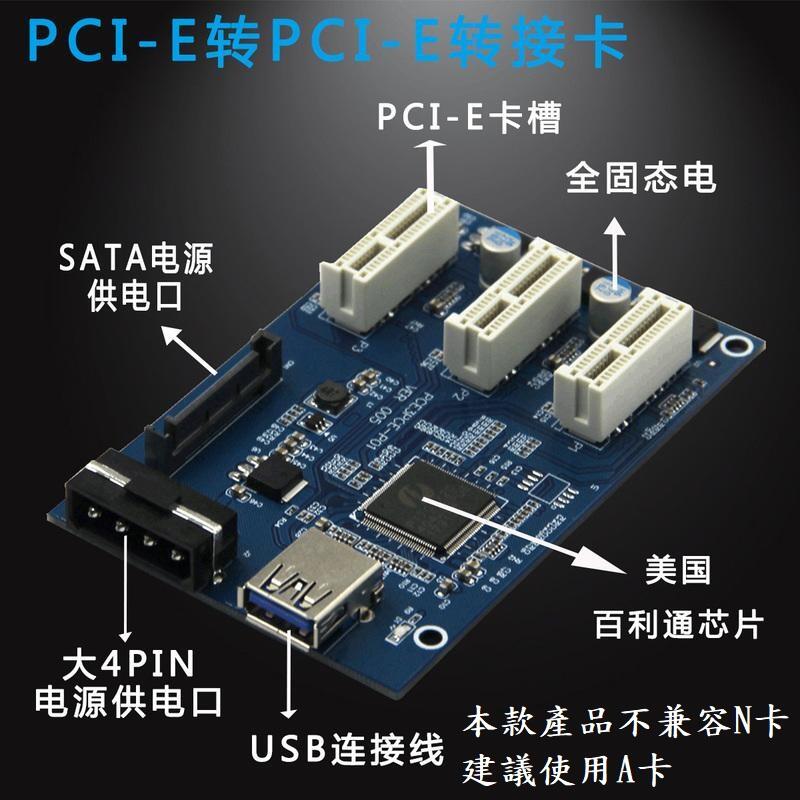 挖礦PCI-E轉PCIe轉接卡 1拖3 PCI-E轉PCIe 1X接口擴展卡 3口PCIe插槽 3PORT 1對三轉接卡