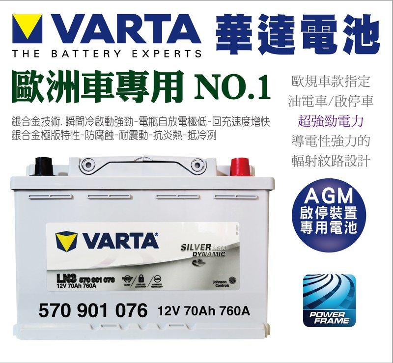 華達電池 VARTA AGM 570901(760A) AUDI A1 A3 A4 Q5 VW PASSAT 啟停電池