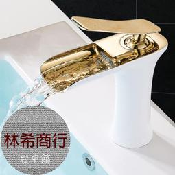 白色水龍頭 烤漆 歐洲 全銅鑄造 白金 優雅 奢華 潔白 面盆龍頭 檯盆水龍頭 瀑布 出水 流水 水流 白色 金色