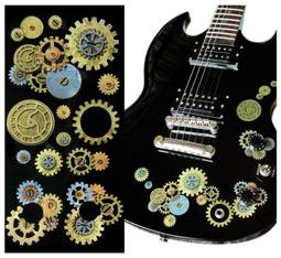 蒸氣齒輪 蒸氣龐克 彩色 琴身貼 電吉他 旋鈕裝飾貼 日本製 另有指板貼 仿真鑲嵌 民謠吉他 電吉他 貝斯 可用 園之屋