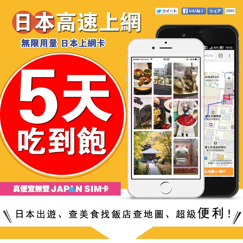 [真便宜無雙]5天 IIJ 日本上網卡 5G網路 不降速 免設定 無限用量 SIM卡/ESIM卡任選 吃到飽 日本 網卡