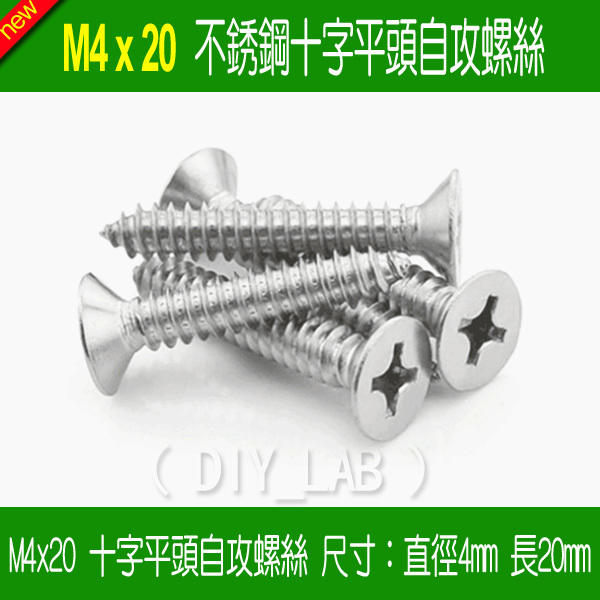 【DIY_LAB 2026】(10只) M4x20 不銹鋼沉頭自攻螺絲/十字平頭螺釘自攻釘木牙螺絲尺寸:直徑4mm長20