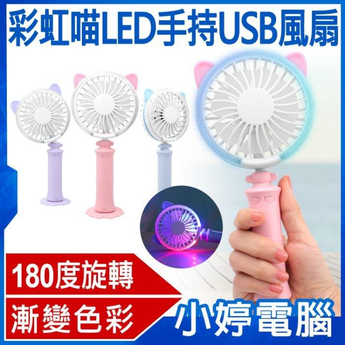【小婷電腦*電風扇】全新 彩虹喵LED手持USB風扇 漸變色彩 手燈 戶外手持 室內座立 兩檔風力 低噪靜音