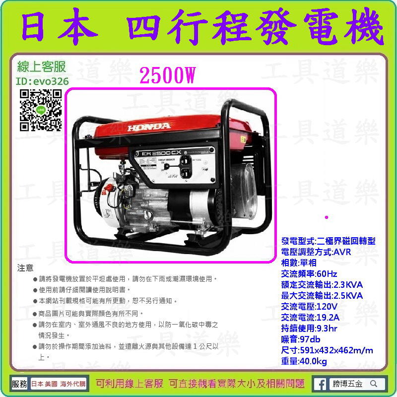 刷卡分期$1688/12期★來電優-工具道樂★日本 HONDA 2500W 四行程發電機 引擎發電機 ER2500CXL
