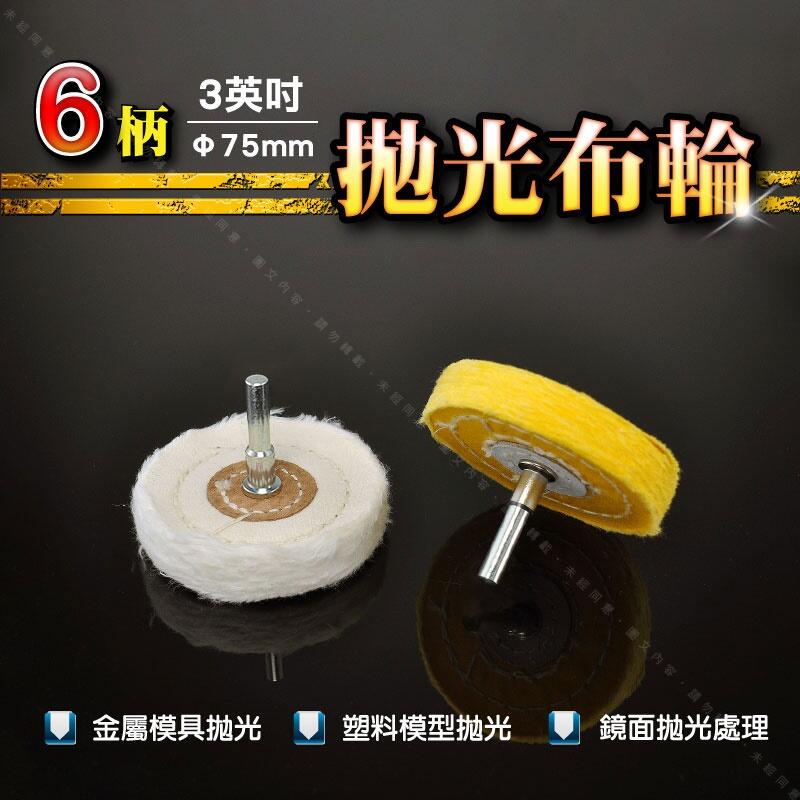 【6mm柄3吋 拋光布輪】金屬鏡面處理 貴金屬金工拋光 模具模型拋光 白布輪 黃布輪 絨布輪 綿布輪 鏡面拋光