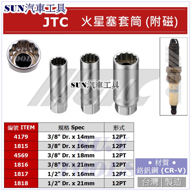 SUN汽車工具 JTC-1816 3/8" 火星塞套筒 附磁 21MM 3分 火星塞 套筒 吸磁 磁性 12角