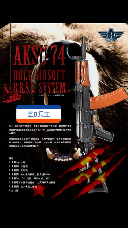 【五0兵工】台灣精品BOLT AKS74U後座力電動槍,AKSU 74
