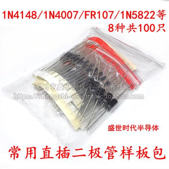 極體包 1N4148 1N4007 FR107 1N5408 1N5822等8種共100只 197-03478