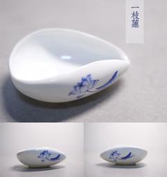 現貨六蓮★手繪茶荷白瓷茶則茶勺青瓷賞茶荷陶瓷功夫茶道配件擺件黑檀木底座現貨六蓮★現貨六蓮★現貨六蓮★