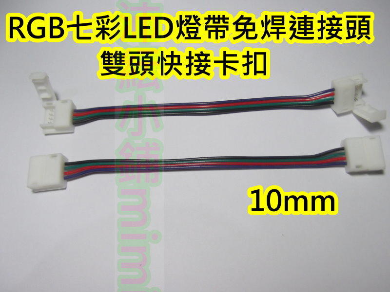 RGB LED滴膠防水燈條快接卡扣【沛紜小鋪】有出線 10mm七彩RGB雙頭免焊連接器 RGB軟燈帶對接卡扣