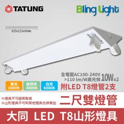 ◎Bling Light LED◎大同T8 LED山型燈具/吸頂燈,T8二尺燈管,10W*2,另有4尺及單燈管