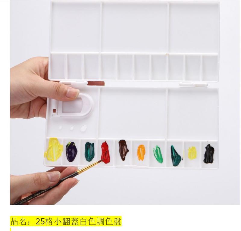 【25格調色盤】塑料長形翻蓋調色盤白色顏料顏料盤折疊式水彩調色盒美術用品/A
