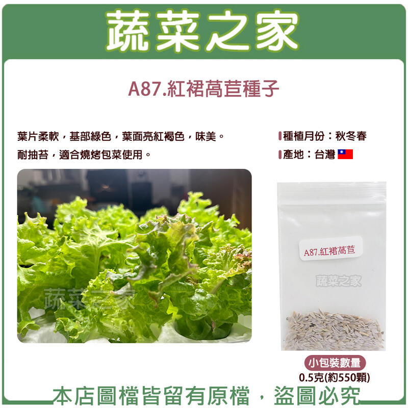 【蔬菜之家滿額免運】A87.紅裙萵苣種子0.5克(約550顆)葉片柔軟,基部綠色,葉面亮紅褐色,味美。耐抽苔