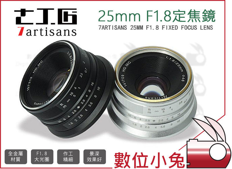 數位小兔【7artisans 七工匠  25mm f1.8 定焦鏡頭  / Canon EOSM】定焦 25mm
