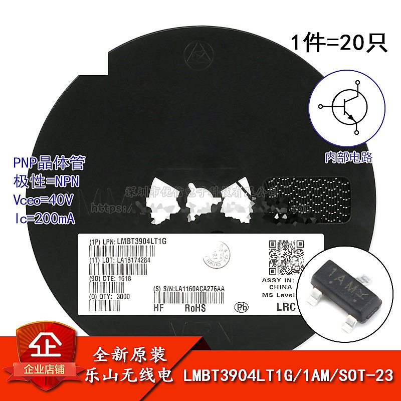 LMBT3904LT1G 絲印1AM SOT-23 40V/200mA 貼片三極管 W2-1 [300898]